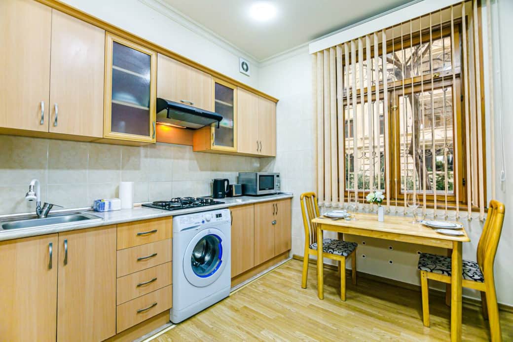Welcome to Tranquil Green Corner — a peaceful modern escape in a bright and spacious 1-bedroom apartment just steps from Azneft Square, the Old City walls, the Boulevard, and Nizami Street. With high ceilings, soft natural light, a cozy living room, full kitchen, private balcony, and calm residential surroundings, this home offers the perfect blend of comfort, walkability, and serenity for solo travellers, couples, and long stays.